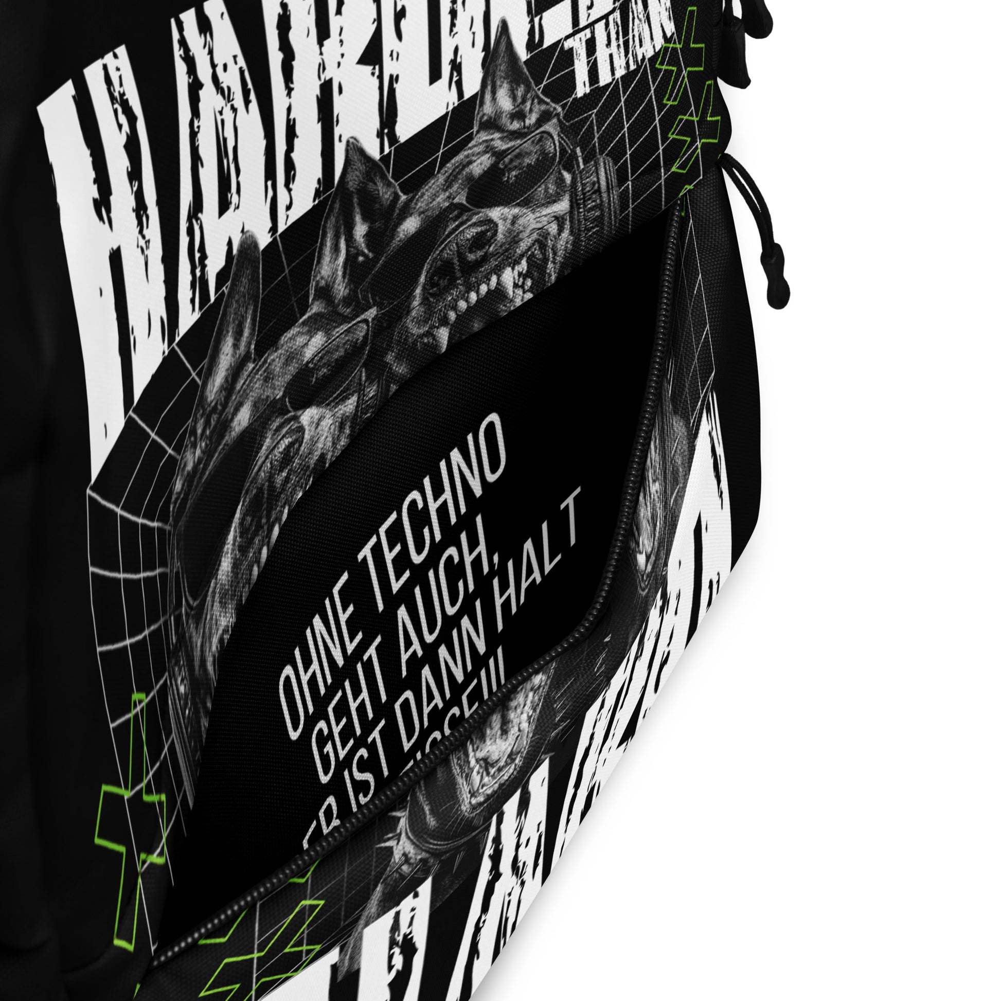 Du spürst den Bass, er trifft dich direkt, und du weißt, die Nacht wird heftig. Mit jedem Schritt zur Party weißt du, dass du alles dabei hast – bereit für jede Eskalation. Dieser Rucksack ist nicht nur praktisch, er ist dein treuer Begleiter für lange Nächte voller harter Kicks und noch härteren Bässe. Hol ihn dir, steig in die Crowd, und zeig, dass du genauso unaufhaltsam bist wie der Sound, der die Nacht bestimmt.
